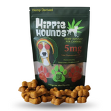 Introducing Hippie Hounds' bag of 5mg treats containing 30 treats and has a total of 150 phytocannabinoids per bag. Their treats are hand-crafted with human grade ingredients such as creamy peanut butter and luscious pumpkin. Hippie Hounds encourages the entourage effect by formulating our products with full-spectrum hemp oil. Our treats have high amounts of CBD as well as minor cannabinoids such as CBC, CBN, CBDA, and more. Ingredients: Whole wheat flour, peanut butter, pumpkin, coconut oil, full- spectrum hemp oil, cornstarch, baking soda, and natural antioxidants for preservation. |