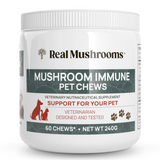 Introducing Mushroom Immune Pet Chews: the ultimate defense for your pet's well-being. These chews combine a potent blend of Reishi, Shiitake, Maitake, Turkey Tail Mushrooms, and Chaga—five defenders known for their immune-boosting properties. Adaptogenic herbs like Astragalus Root and Ashwagandha Root enhance the immune system, all while food-sourced antioxidants from Blueberry Powder and Acerola support overall health. With the addition of Olive Leaf Extract, derived from the Mediterranean diet, these chews provide comprehensive support for your pet's immune system and overall vitality. Embrace the power of Mushroom Immune Pet Chews to protect and nurture your pet's well-being.